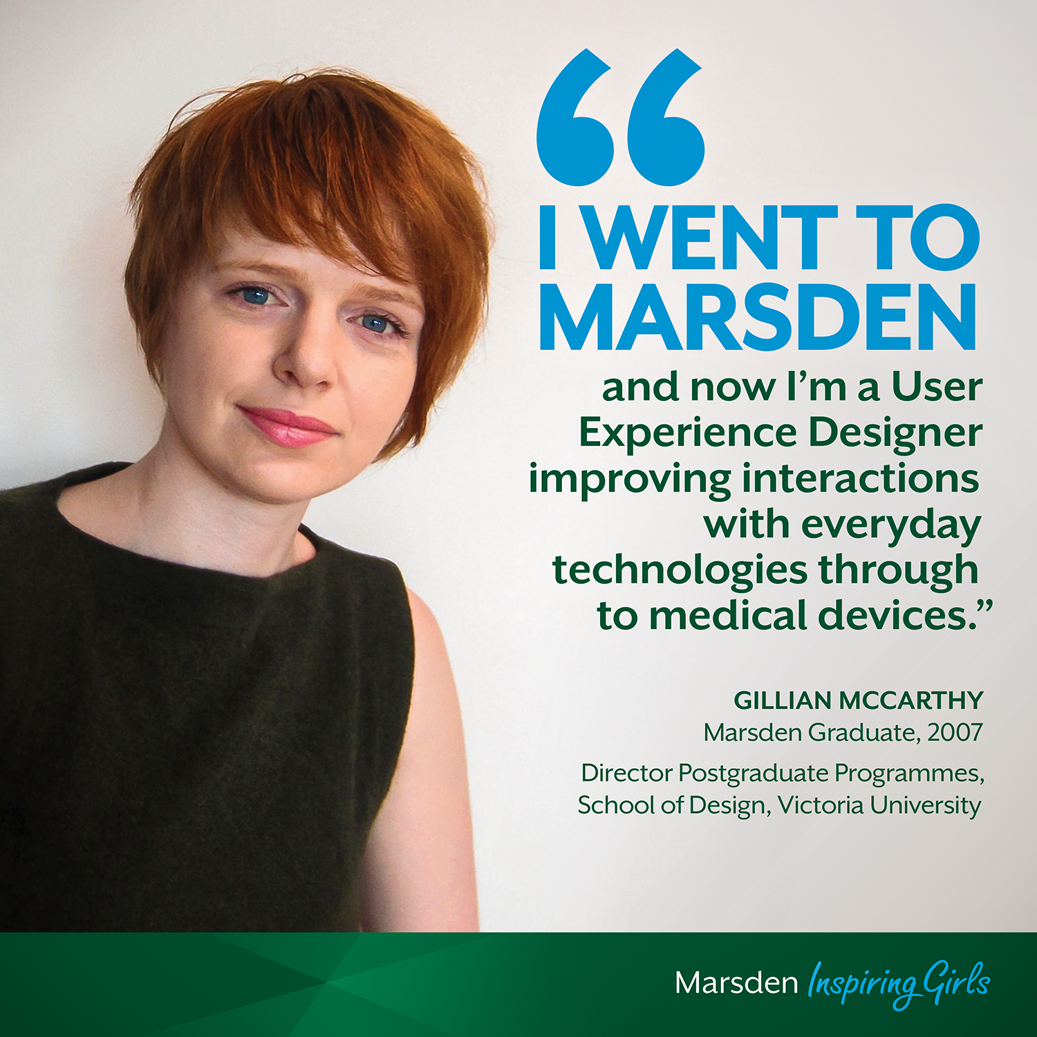 Gillian McCarthy graduated from Marsden in 2007. She went on to complete a BA and BCSpCs (Hons1) from Otago University and subsquently a PhD at Victoria University, Wellington where she is currently a Lecturer in Media Design and Interaction Design. Her work focuses on the interactions between people and both physical and digital designs.