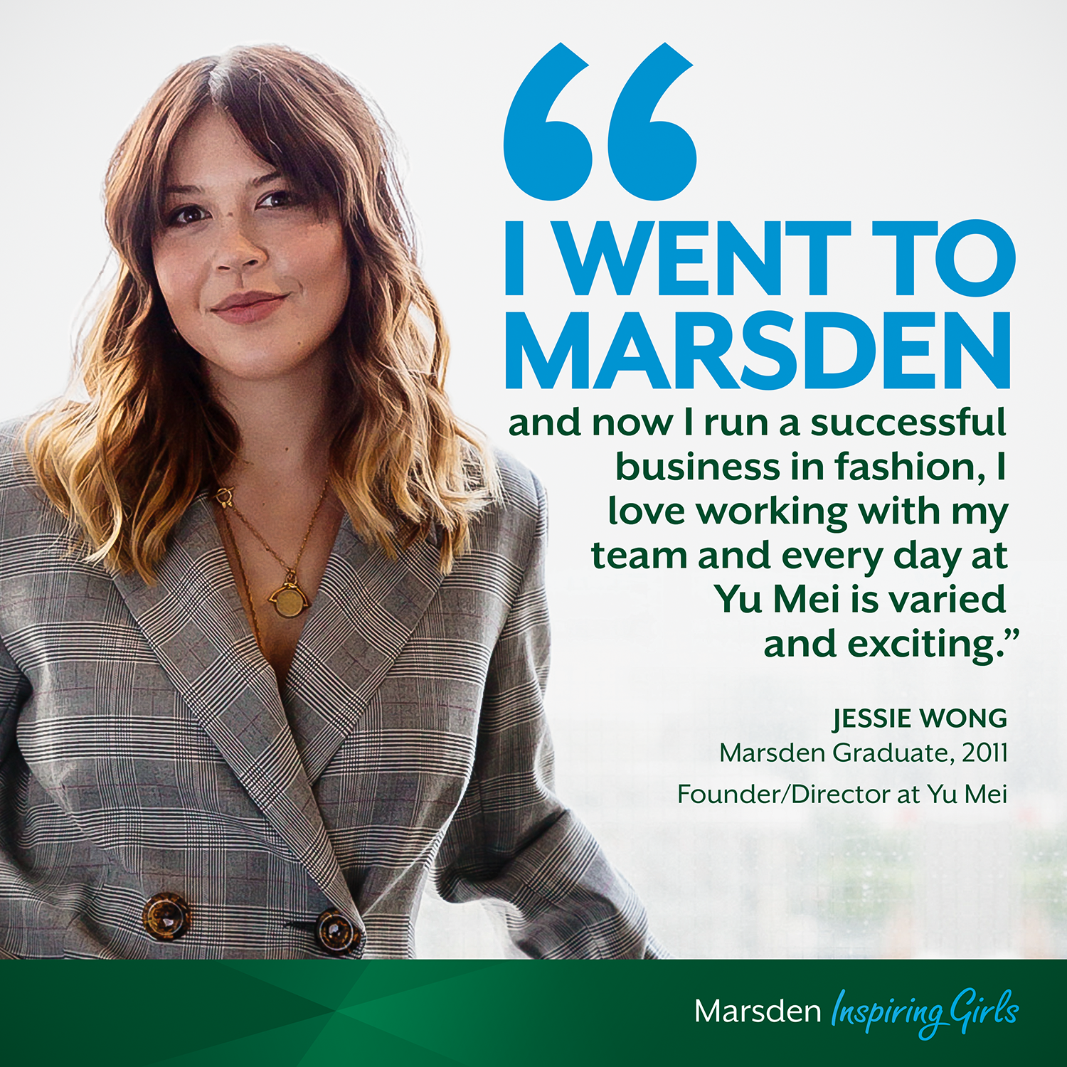 Jessie's determination and drive to pursue her love of fashion is reflected in all that she does. She also generously shares her journey and experience with Marsden design technology students on a regular basis.